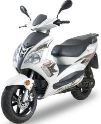 Features - Tagfahrlicht & LED-Blinkleuchten - klappbare Sozius-Fußrasten - Zusätzlicher Kickstarter im Aludesign - 5-fach verstellbare Federbeine hinten - Modernes Cockpit - Modern gestylte Auspuffblende - Racing Sportauspuff - Große Sitzbank für 2 Personen - LED-Heckleuchte - 25 km/h Mofa-Drossel nachrüstbar. - Lieferung auch ab Werk