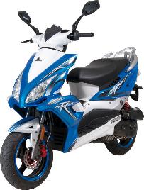 Features - LED-Lichttechnik - Wave-Scheibenbremsen - CVT-Automatik - Auspuff im Racing-Look - Helmfach - Jet-Stream Design - Elektro- & Kickstarter - Doppelscheinwerfer - Sitzbank für 2 Personen - 25 km/h Mofa-Drossel nachrüstbar